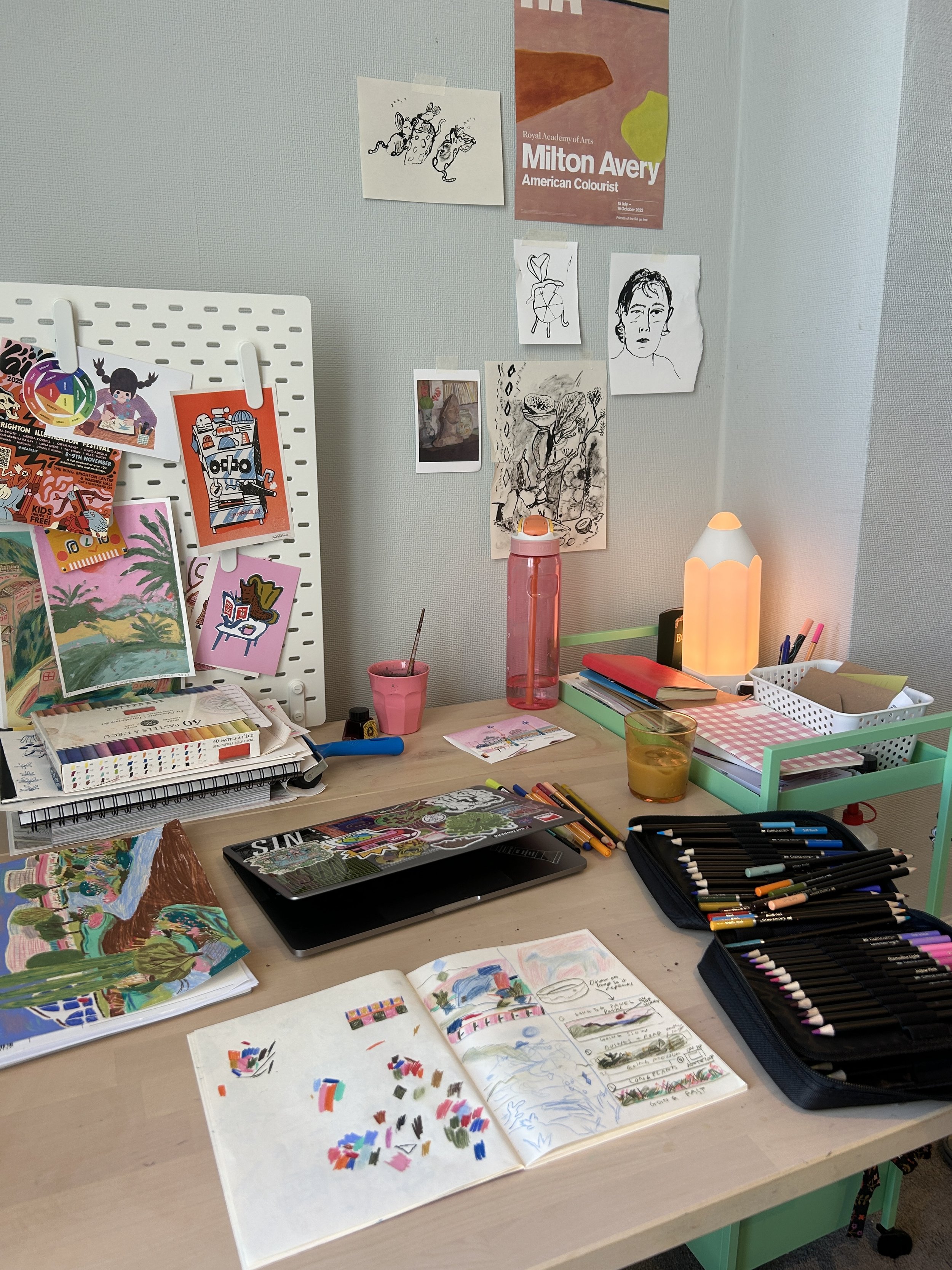 Hello! I’m an illustrator based in Brighton. I enjoy working with a range of materials such as coloured pencils, pastels and gouache. My work is often from observation, taking inspiration from nature, food, film and literature.