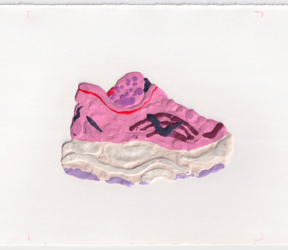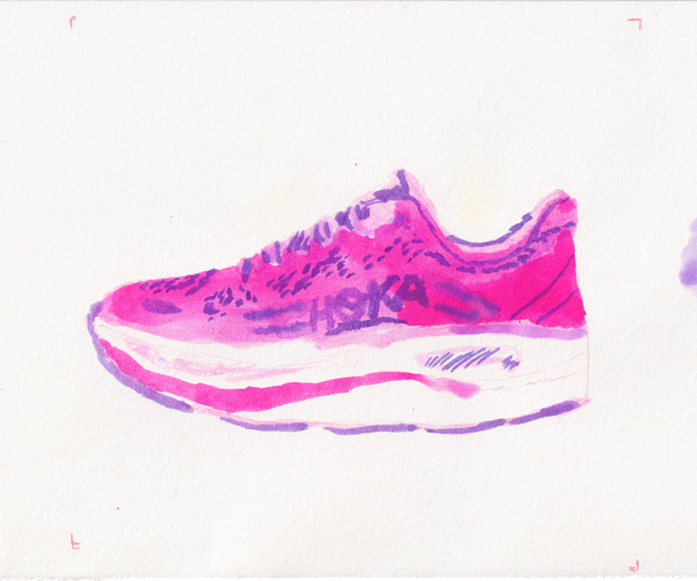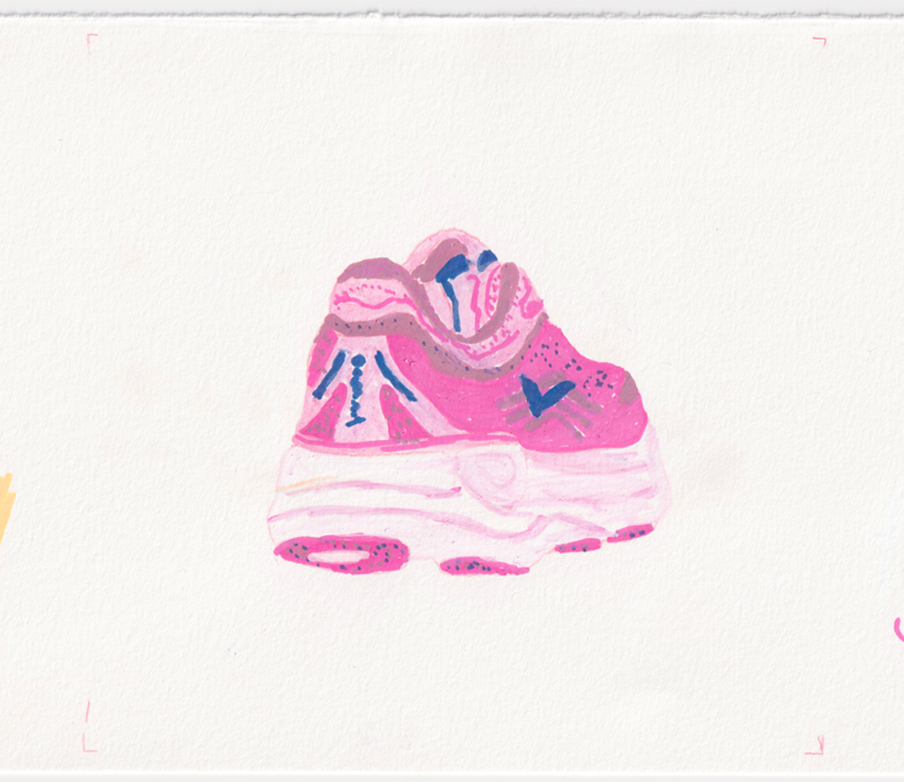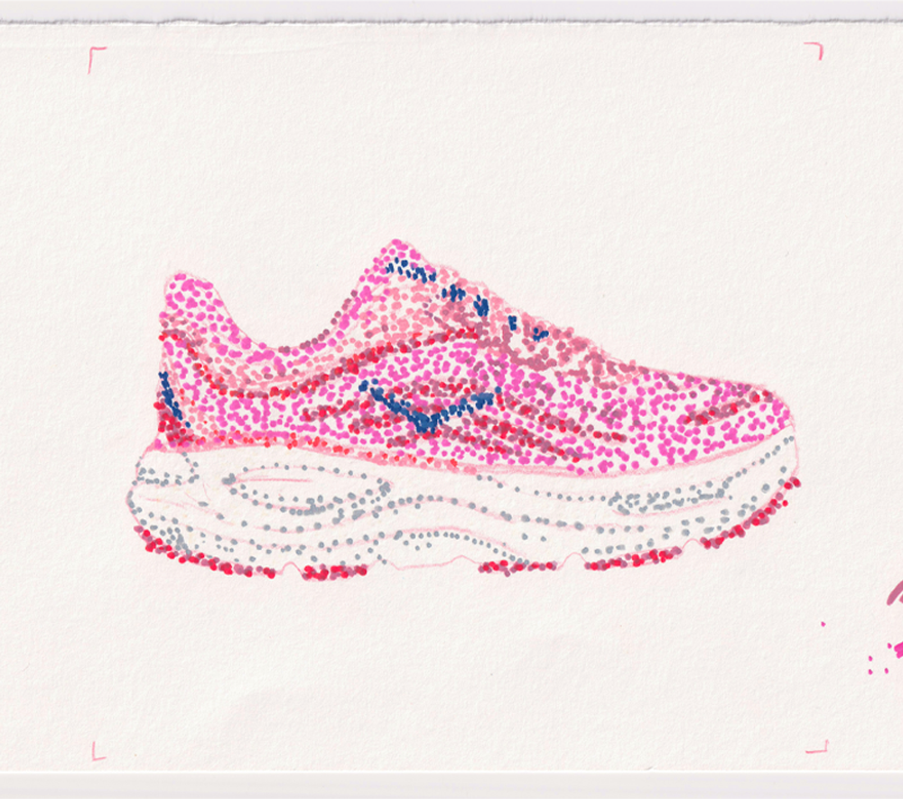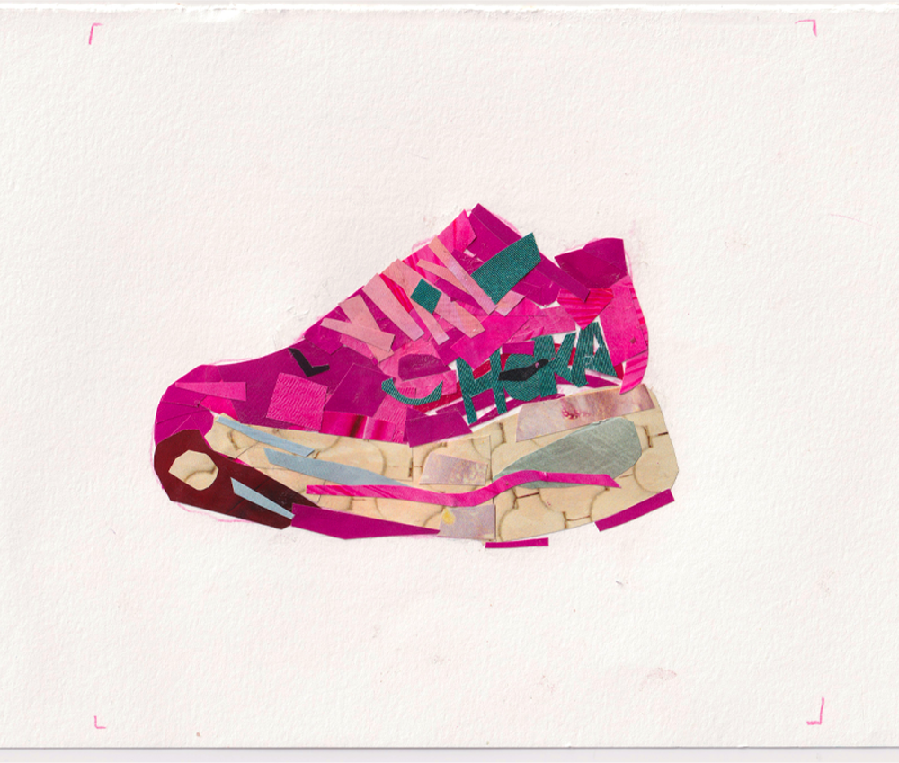 As a personal project, I created a GIF of a Hoka running shoe, using 16 different hand-drawn layers to create the loop. During my art foundation at Brighton MET, we were set a two day project of drawing an object 100 different ways - at the time, I chose a toy car. I’ve been wanting to do a similar project for a while, and I thought a GIF would be a fun way to do it! Some of the materials I used were plastercine, marker pens, collage, pencils and watercolour paint. Take a look at some of the individual frames below!